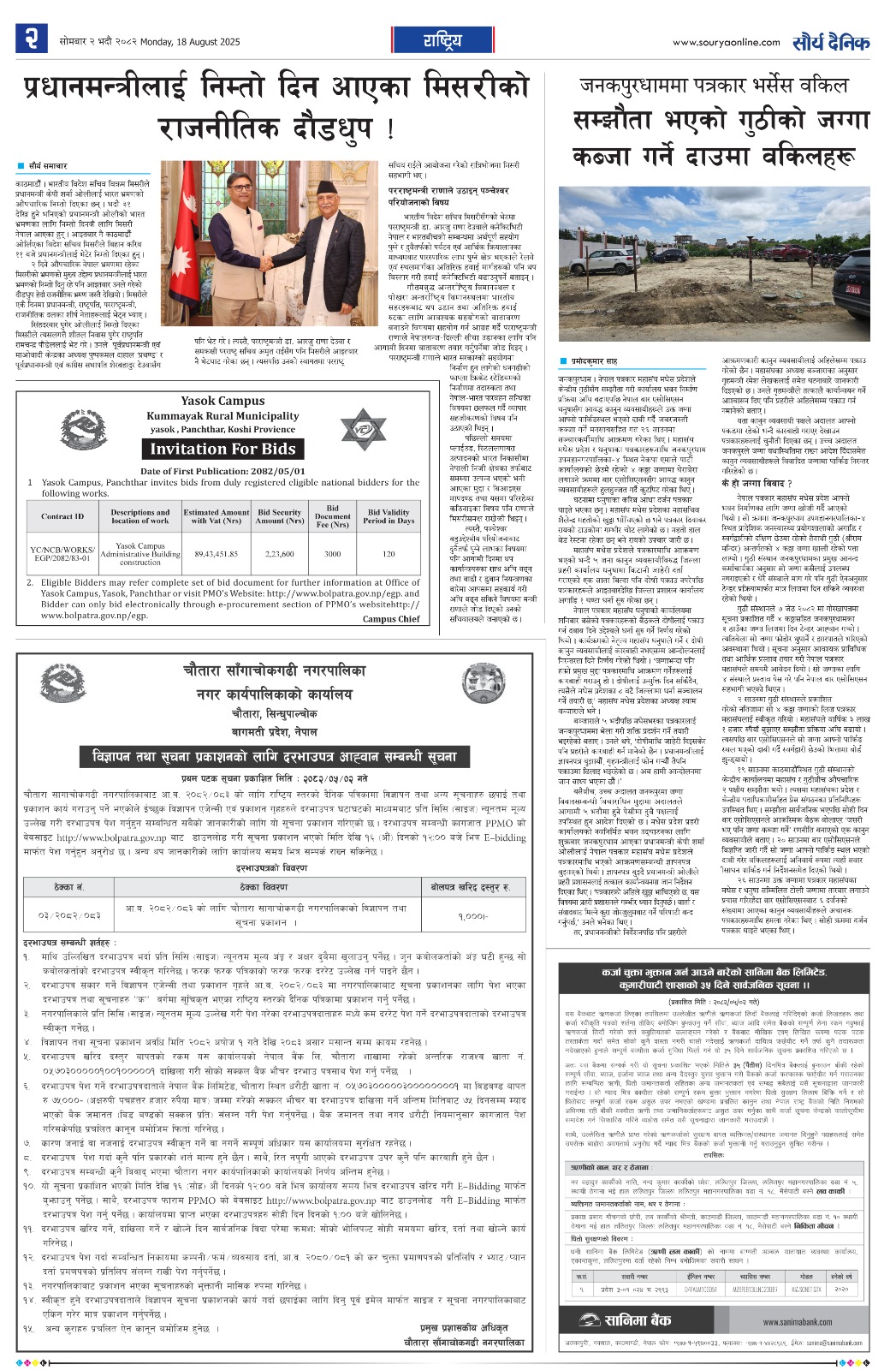 विज्ञापन तथा सूचना प्रकाशनको लागि दरभाउपत्र आह्वान सम्बन्धी सूचना