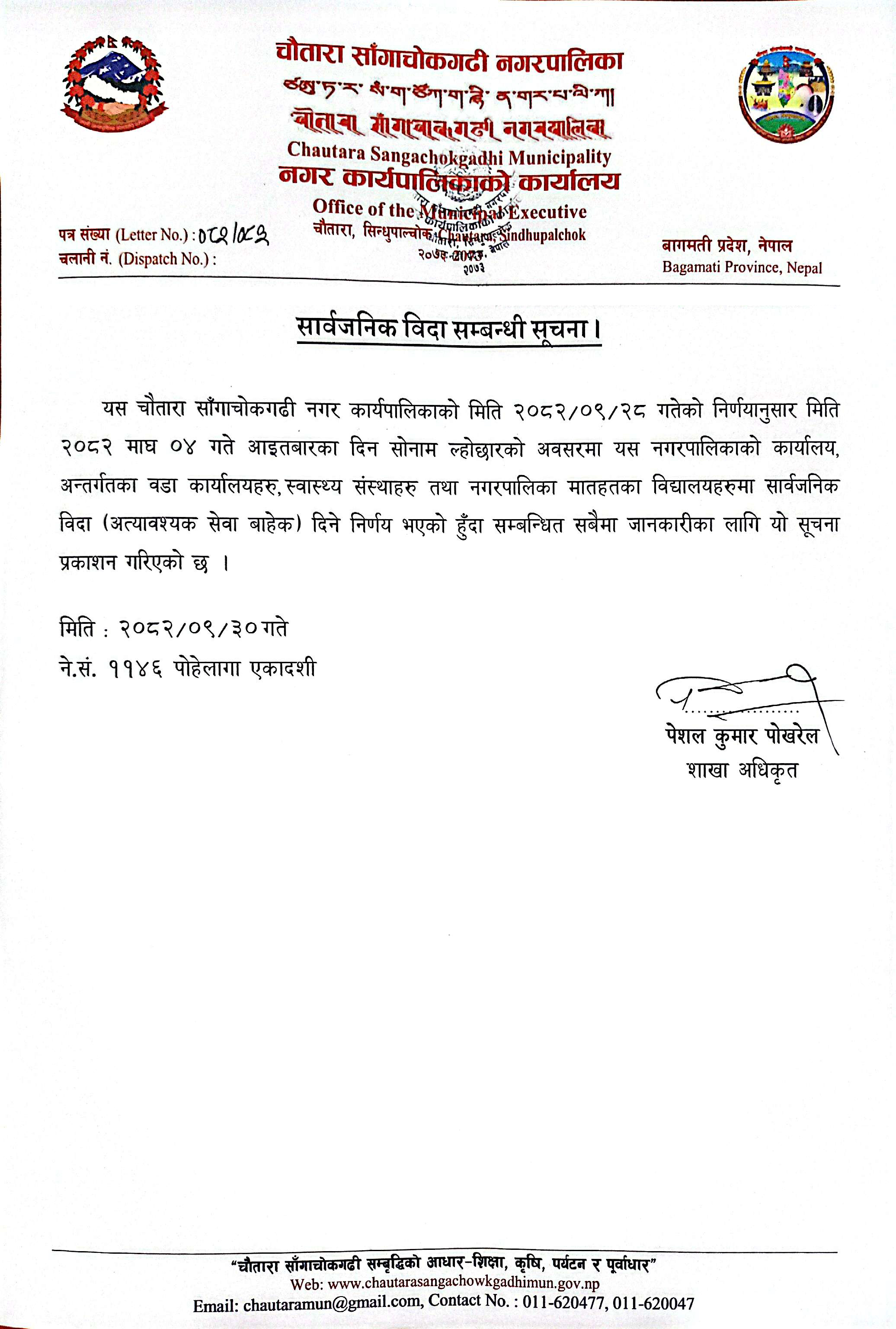 सार्वजनिक विदा सम्बन्धी सूचना ।